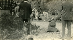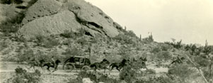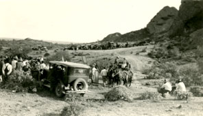 This is a series of amateur production photographs of the filming of Gary Cooper's first major western, Arizona Bound, in Papago Park in 1927. |
