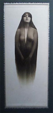 Photographic research is based on obtaining as much information as possible about an image, then building a logical context for a possible identification of the image. As new information is located, it is compared, and the interpretations checked for "fit" given the new data. This context can be in the form of: Each can provide valuable information that must be evaluated and verified before it can be relied upon. For example, evidence such as photographers imprints can often be incorrect for copied images, a common photographic practice since the birth of photography through the era of Kaloma in 1914. For example, the well-known images of Geronimo by Irwin, Randall and Wittick, and C. S. Fly were frequently copied and today examples regularly appear with imprints of many other photographers. Interpretation based on the format of the photograph or information within the image, such as building signs, can help verify or refute written identification that may have been added to the mount. All written information associated with an image should be confirmed, particularly if it was added after the image was originally produced. Well-intentioned family members, collectors and museum staff often add attributions to the photographs that pass through their hands. Their impressions or knowledge, and the accuracy of the written information, should be verified before it is assumed to be correct. Speculation may be based on interpretation of available evidence, on emotional reaction to a photograph, or desire to "trim"a piece of the puzzle of history to make it fit. Speculation can be benign or unintentional when it is based on little knowledge or incorrect information. Personal desire or a potentially escalating image market can also drive speculative interpretations. For example, a tintype photo showing a young man in a bowler hat is found in an old family album. A quick search locates photos of young Butch Cassidy in a bowler hat from this era. If there is some similarity to build and facial features, an uninformed or unscrupulous seller could conclude that the tintype is of Butch Cassidy and promote the photograph as a new unknown Butch Cassidy image. Every photographic identification is only as accurate as the weakest link in the information about the image available at a given time. Anecdotes and speculation make great stories but are merely weak links in accurately identifying a photograph. Unfortunately, once incorrect information becomes widely available through print or the web, it can be extremely difficult to rein in the error and replace it with correct information. For many years the Smithsonian recommended cleaning daguerreotypes with thyrea, a chemical found in silver cleaner. In the 1980s research showed that thyrea damaged the plate and should not be used. Many collectors and antique dealers still find old references by sources highly credible when originally published, and use thyrea to clean and damage their valuable images. The image of Kaloma has taken on a life of her own through Boyer's book cover and the trail of auction catalog descriptions that built upon his attribution. Images of towns or events often include building signage or other information that simplifies identification. Questions about the date and location of unattributed images of family members or unknown individuals are common in photographic research and genealogy. Unfortunately, portraits rarely include such helpful clues, making identifying anonymous portraits extremely difficult. Many individuals share common facial features, and even radically different faces can look similar when viewed from certain angles. For this reason, most museum staff, knowledgeable researchers and collectors require provenance or history about the image to support physical similarities that might exist. Rarely will they weigh in with tentative identifications of new or unique images of famous people based only on visual similarities with other known images. Tentative identification of images thought to be Emily Dickinson, Abraham Lincoln, and Jesse James based on perceived similarities are among many that are currently being disputed by museums and collectors, and in the press. Looking at context and dating clues in the photograph is a good start at going beyond perceived physical similarities. Most of the early Kaloma images seen to date are photogravures. These high quality reproductions from photographs were produced from engraving plates on a printing press, and were much less costly for publication runs than actual photographs. Photogravures were often printed with title and publication data below the image and were commonly used to create many copies of high quality illustrations for books, postcards and art magazines. Though photogravures had been used since the 1850s, their surge in popularity was between 1890 and 1920. Copyright notifications have been printed on photograph mounts and occasionally in the image area since the 1850s. Notices were occasionally printed or etched in the negative, or later added to the surface of the print with a rubber stamp (C. S. Fly used stamped copyright notifications on many of his images of General George Crook and the surrender of Crook and Geronimo). Though copying and piracy were common, pirates rarely included previous notices when illegally reproduced. The Kaloma images seen to date have all been associated with copyright notices dating from after 1914. The photograph on the sheet music is unattributed, though the music is copyrighted to Cosmopolitan Publishing Company. Risqué photographs like the Kaloma image have been made and sold since the 1840s. These images rarely included photographer's credits or copyright notices. Also, the subjects of such "art"photographs were not usually identified. It is highly unlikely that even if the subject of Kaloma had been identified at some point, such documentation by photographer or publisher would still exist. However, given the heated leve